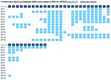 Transcript Variants: There are 13 known alternative splicing patterns.[5] These can be seen in the adjacent image. One of these is indicated in disease.[8]