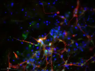 Class III β-tubulin is one of the seven β-tubulin isotypes identified in the human genome, predominantly in neurons and the testis. It is conditionally expressed in a number of other tissues after exposure to a toxic microenvironment featured by hypoxia and poor nutrient supply.[14][15][16] Posttranslational changes including phosphorylation and glycosylation are required for functional activity.[12] Class III β-tubulin's role in neural development has warranted its use as an early biomarker of neural cell differentiation from multi potent progenitors.[17] TUBB3 inactivation impairs neural progenitor proliferation. Rescue experiments demonstrate the non-interchangeability of TUBB3 with other classes of β-tubulins which cannot restore the phenotype resulting from TUBB3 inactivation.[18] Congenital neurologic syndromes associated with TUBB3 missense mutations demonstrate the critical importance of class III β-tubulin for normal neural development.[13][19]