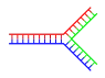 In DNA, fraying occurs when non-complementary regions exist at the end of an otherwise complementary double-strand of DNA. However, branched DNA can occur if a third strand of DNA is introduced and contains adjoining regions able to hybridize with the frayed regions of the pre-existing double-strand. Although the simplest example of branched DNA involves only three strands of DNA, complexes involving additional strands and multiple branches are also possible.[69] Branched DNA can be used in nanotechnology to construct geometric shapes, see the section on uses in technology below.