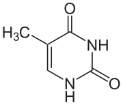 The nucleobases are classified into two types: the purines, A and G, which are fused five- and six-membered heterocyclic compounds, and the pyrimidines, the six-membered rings C and T.[12] A fifth pyrimidine nucleobase, uracil (U), usually takes the place of thymine in RNA and differs from thymine by lacking a methyl group on its ring. In addition to RNA and DNA, many artificial nucleic acid analogues have been created to study the properties of nucleic acids, or for use in biotechnology.[19]