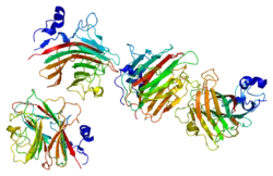 ERGIC-53 (also named LMAN1) is a type I integral membrane protein localized in the intermediate region (ERGIC) between the endoplasmic reticulum and the Golgi, presumably recycling between the two compartments. The protein is a mannose-specific lectin and is a member of a novel family of plant lectin homologs in the secretory pathway of animal cells. Mutations in the gene are associated with a coagulation defect. Using positional cloning, the gene was identified as the disease gene leading to combined deficiency of factor V-factor VIII, a rare, autosomal recessive disorder in which both coagulation factors V and VIII are diminished.[8][7] MCFD2 is the second gene that leads to combined deficiency of factor V-factor VIII.[9] ERGIC-53 and MCFD2 form a protein complex and serve as a cargo receptor to transport FV and FVIII from the ER to the ERGIC and then the Golgi,[10]as illustrated here.[8]