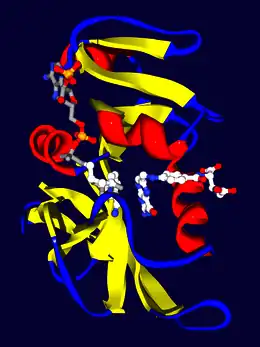 Enzymes with ternary-complex mechanisms include glutathione S-transferase,[25] dihydrofolate reductase[26] and DNA polymerase.[27] The following links show short animations of the ternary-complex mechanisms of the enzymes dihydrofolate reductase[β] and DNA polymerase[γ].