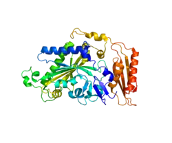 Phenylalanyl-tRNA synthetase, mitochondrial (FARS2) is an enzyme that in humans is encoded by the FARS2 gene.[5] This protein encoded by FARS2 localizes to the mitochondrion and plays a role in mitochondrial protein translation. Mutations in this gene have been associated with combined oxidative phosphorylation deficiency 14, also known as Alpers encephalopathy, as well as spastic paraplegia 77 and infantile-onset epilepsy and cytochrome c oxidase deficiency.[6][7]