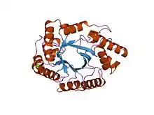 The microbial degradation of cellulose and xylans requires several types of enzymes such as endoglucanases (EC 3.2.1.4), cellobiohydrolases (EC 3.2.1.91) (exoglucanases), or xylanases (EC 3.2.1.8).[8][9] Fungi and bacteria produces a spectrum of cellulolytic enzymes (cellulases) and xylanases which, on the basis of sequence similarities, can be classified into families. One of these families is known as the cellulase family F[10] or as the glycosyl hydrolases family 10.[11]
