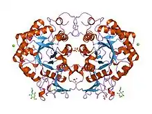 Glycoside hydrolases EC 3.2.1. are a widespread group of enzymes that hydrolyse the glycosidic bond between two or more carbohydrates, or between a carbohydrate and a non-carbohydrate moiety. A classification system for glycoside hydrolases, based on sequence similarity, has led to the definition of >100 different families.[1][2][3] This classification is available on the CAZy web site,[4][5] and also discussed at CAZypedia, an online encyclopedia of carbohydrate active enzymes.[6][7]