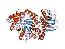 Glycoside hydrolases EC 3.2.1. are a widespread group of enzymes that hydrolyse the glycosidic bond between two or more carbohydrates, or between a carbohydrate and a non-carbohydrate moiety. A classification system for glycoside hydrolases, based on sequence similarity, has led to the definition of >100 different families.[1][2][3] This classification is available on the CAZy web site,[4][5] and also discussed at CAZypedia, an online encyclopedia of carbohydrate active enzymes.[6][7]