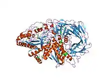 Glycoside hydrolases EC 3.2.1. are a widespread group of enzymes that hydrolyse the glycosidic bond between two or more carbohydrates, or between a carbohydrate and a non-carbohydrate moiety. A classification system for glycoside hydrolases, based on sequence similarity, has led to the definition of >100 different families.[1][2][3] This classification is available on the CAZy web site,[4][5] and also discussed at CAZypedia, an online encyclopedia of carbohydrate active enzymes.[6][7]