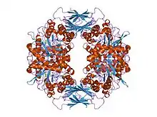 Glycoside hydrolases EC 3.2.1. are a widespread group of enzymes that hydrolyse the glycosidic bond between two or more carbohydrates, or between a carbohydrate and a non-carbohydrate moiety. A classification system for glycoside hydrolases, based on sequence similarity, has led to the definition of >100 different families.[1][2][3] This classification is available on the CAZy web site,[4][5] and also discussed at CAZypedia, an online encyclopedia of carbohydrate active enzymes.[6][7]