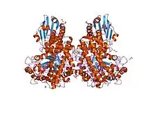 Glycoside hydrolases EC 3.2.1. are a widespread group of enzymes that hydrolyse the glycosidic bond between two or more carbohydrates, or between a carbohydrate and a non-carbohydrate moiety. A classification system for glycoside hydrolases, based on sequence similarity, has led to the definition of >100 different families.[1][2][3] This classification is available on the CAZy web site,[4][5] and also discussed at CAZypedia, an online encyclopedia of carbohydrate active enzymes.[6][7]