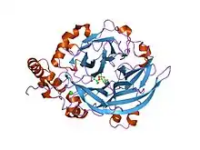Glycoside hydrolases EC 3.2.1. are a widespread group of enzymes that hydrolyse the glycosidic bond between two or more carbohydrates, or between a carbohydrate and a non-carbohydrate moiety. A classification system for glycoside hydrolases, based on sequence similarity, has led to the definition of >100 different families.[1][2][3] This classification is available on the CAZy web site,[4][5] and also discussed at CAZypedia, an online encyclopedia of carbohydrate active enzymes.[6][7]
