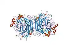 It does show a structural similarity to influenza viral neuraminidase and has a six-bladed beta-propeller structure.[3] This Pfam entry also matches measles hemagglutinin (cd15467), which has a "dead" neuraminidase part repurposed as a receptor binding site.[4]