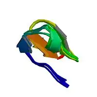 Heteroscodratoxin-1 (also known as κ-theraphototoxin-Hm1a, κ-TRTX-Hm1a, δ-theraphotoxin-Hm1a, δ-TRTX-Hm1a, Hm1a or HmTx1) is a neurotoxin produced by the venom glands of Heteroscodra maculata (Togo starburst tarantula)[1] that shifts the activation threshold of voltage-gated potassium channels and the inactivation of Nav1.1 sodium channels to more positive potentials.[2][3]