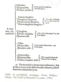 - "A Table of Kindred and Affinity". Book of Common Prayer. Canada. 1962. Archived from the original on 29 November 2014. Retrieved 26 December 2014.