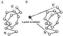 Mathematically, a knot is defined as a subset of three-dimensional space that is homeomorphic to a circle.[5] According to this definition, a knot must exist in a closed loop, while knotted proteins instead exist within open, unclosed chains. In order to apply mathematical knot theory to knotted proteins, various strategies can be used to create an artificial closed loop. One such strategy is to choose a point in space at infinite distance to be connected to the protein's N- and C-termini through a virtual bond, thus the protein can be treated as a closed loop. Another such strategy is to use stochastic methods that create random closures.