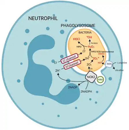 - Hampton MB, Kettle AJ, Winterbourn CC (November 1998). "Inside the neutrophil phagosome: oxidants, myeloperoxidase, and bacterial killing". Blood. 92 (9): 3007–17. doi:10.1182/blood.V92.9.3007.421k47_3007_3017. PMID 9787133. S2CID 45991444.