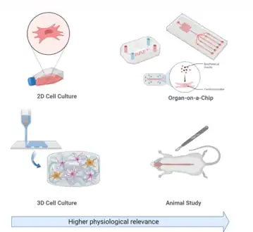 OoC systems mimic and control the microenvironment of the cells by growing tissues in microfluidics. Combining tissue engineering, biomaterials fabrication, and cell biology, it offers the possibility of establishing a biomimetic model for studying human diseases in the laboratory. In recent years, 3D cell culture science has made significant progress, leading to the development of OoC. OoC is considered as a preclinical step that benefits pharmaceutical studies, drug development and disease modeling.[84][85] OoC is an important technology that can bridge the gap between animal testing and clinical studies and also by the advances that the science has achieved could be a replace for in vivo studies for drug delivery and pathophysiological studies.[86]