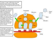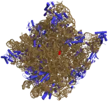 In this fashion, RNAs can achieve chemical catalysis (like enzymes).[7] For instance, determination of the structure of the ribosome—an RNA-protein complex that catalyzes peptide bond formation—revealed that its active site is composed entirely of RNA.[8]