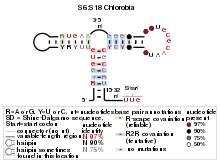 S6:S18 ribosomal protein leader is a ribosomal protein leader involved in the ribosome biogenesis. It is used as an autoregulatory mechanism to control the concentration of the ribosomal proteins S6:S18 complex. An experimentally confirmed example of such a leader occurs in a wide variety of bacteria,[2] though not all phyla. A S6:S18 ribosomal leader was predicted in Chlorobia,[1] and its predicted structure differs from that of the validated S6:S18 ribosomal leader. This structure is located in the 5′ untranslated regions of mRNAs encoding ribosomal proteins rpsF (S6), the Single-strand DNA-binding protein A (ssbA), S18 (rpsR) and L7/L12 (rpll).[1]