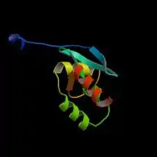 The SKI protein has a 728 amino acid sequence, with multiple domains. It is expressed both inside and outside of the nucleus.[9] It is in the same family as the SnoN protein. The different domains have different functions, with the primary domains interacting with Smad proteins. The protein has a helix-turn-helix motif, a cysteine and histidine rich area which gives rise to the zinc finger motif, a basic amino acid region, and leucine zipper. All these domains, including a proline rich region, are consistent with the fact that the protein must have domains that allow it to interact with other proteins.[9] The protein also has hydrophobic regions which come into contact with Smad proteins rich in leucine and phenylalanine amino acid regions.[11] Recent studies have suggested a domain similar to the Dachshund protein. The SKI-Dachshund homology domain (SKI-DHD) contains the helix turn helix domains of the protein and the beta-alpha-beta turn motifs.[7]
