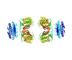 Spermine synthase is an enzyme that in humans is encoded by the SMS gene.[4][5][6] The protein encoded by this gene belongs to the spermidine/spermine synthases family. This gene encodes a ubiquitous enzyme of polyamine metabolism.[6]