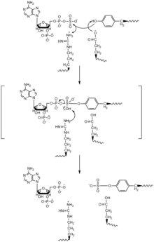 A two-site ping-pong mechanism for TPST and the tyrosine sulfating has been proposed. PAPS enters one site of TPST and the sulfonate group is transferred to a Histidine residue in the enzyme and PAP is released. Then, the target protein and tyrosine bind TPST and the histidine transfers the sulfonate group to the target tyrosine.[11]