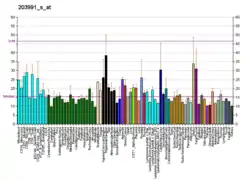 - Beausoleil SA, Jedrychowski M, Schwartz D, et al. (2004). "Large-scale characterization of HeLa cell nuclear phosphoproteins". Proc. Natl. Acad. Sci. U.S.A. 101 (33): 12130–5. Bibcode:2004PNAS..10112130B. doi:10.1073/pnas.0404720101. PMC 514446. PMID 15302935.