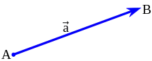 In mathematics, physics, and engineering, a Euclidean vector or simply a vector (sometimes called a geometric vector[1] or spatial vector[2]) is a geometric object that has magnitude (or length) and direction. Euclidean vectors can be added and scaled to form a vector space. A Euclidean vector is frequently represented by a directed line segment, or graphically as an arrow connecting an initial point A with a terminal point B,[3] and denoted by