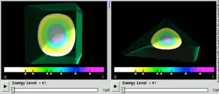 In quantum physics, a wave function (or wavefunction) is a mathematical description of the quantum state of an isolated quantum system. The most common symbols for a wave function are the Greek letters ψ and Ψ (lower-case and capital psi, respectively). Wave functions are complex-valued. For example, a wave function might assign a complex number to each point in a region of space. The Born rule[1][2][3] provides the means to turn these complex probability amplitudes into actual probabilities. In one common form, it says that the squared modulus of a wave function that depends upon position is the probability density of measuring a particle as being at a given place. The integral of a wavefunction's squared modulus over all the system's degrees of freedom must be equal to 1, a condition called normalization. Since the wave function is complex-valued, only its relative phase and relative magnitude can be measured; its value does not, in isolation, tell anything about the magnitudes or directions of measurable observables. One has to apply quantum operators, whose eigenvalues correspond to sets of possible results of measurements, to the wave function ψ and calculate the statistical distributions for measurable quantities.