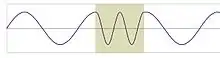 Localized wave packets, "bursts" of wave action where each wave packet travels as a unit, find application in many fields of physics. A wave packet has an envelope that describes the overall amplitude of the wave; within the envelope, the distance between adjacent peaks or troughs is sometimes called a local wavelength.[21][22] An example is shown in the figure. In general, the envelope of the wave packet moves at a speed different from the constituent waves.[23]