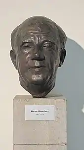 Werner Karl Heisenberg (pronounced [ˈvɛʁnɐ kaʁl ˈhaɪzn̩bɛʁk] ; 5 December 1901 – 1 February 1976)[2] was a German theoretical physicist, one of the main pioneers of the theory of quantum mechanics, and a principal scientist in the Nazi nuclear weapons program during World War II. He published his Umdeutung paper in 1925, a major reinterpretation of old quantum theory. In the subsequent series of papers with Max Born and Pascual Jordan, during the same year, his matrix formulation of quantum mechanics was substantially elaborated. He is known for the uncertainty principle, which he published in 1927. Heisenberg was awarded the 1932 Nobel Prize in Physics "for the creation of quantum mechanics".[3][lower-alpha 1]