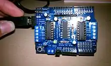 Two motor drivers were downloaded as zip files and expanded into a window's machines c:\programs\arduino\libraries folder. The new folder names were to long and contained spaces according to an error message that hid behind some open windows. The arduino IDE would not start. The folders were renamed AccelStepper and MotorShield. Then the arduino IDE started. New examples appeared in the arduino software files > examples folder.