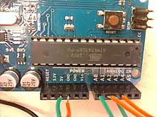 The next step was to figure out what Vin on the arduino was. Was there enough power coming out of that pin to power the RC receiver? A test was made. A 9 volt wall adapter was plugged into the arduino. 8.3 volts appeared on the pin. But could enough current be drawn from this pin? Would it cripple the Arduino?