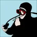 - International code flag "Alpha" (White hoist, blue swallowtail fly)