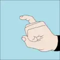 - Go that way: Fist with one hand, thumb extended and pointing in the direction indicated.