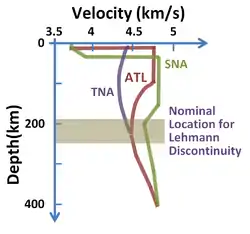 "Reconstruction of seismic reflections in the deep interior indicate some major discontinuities in seismic velocities that demarcate the major zones of the Earth: inner core, outer core, mantle, lithosphere and crust."[2]