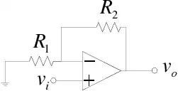 A non-inverting amplifier is a special case of the differential amplifier in which that circuit's inverting input V1 is grounded, and non-inverting input V2 is identified with Vin above, with R1 ≫ R2. Referring to the circuit immediately above,