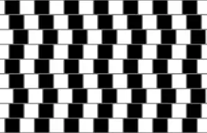 - Now look at the array from the side or use a straight edge or ruler to examine and measure the horizontal lines. It may be helpful to double click on the figure to examine a larger rendering of the image. You may find it best to print out the image and examine the hard copy rendering of it. Focus on the image one square at a time. Can you see the horizontal lines bend at any point? Do the horizontal lines seem parallel or tilted when you analyze them objectively?