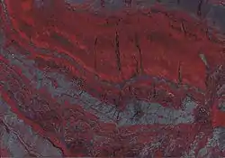 Though they started appearing in the Archean Eon, Banded Iron Formations (or BIFs) became prevalent in the Paleo-Proterozoic. BIFs are cherts that show alternating bands of dark red and light gray. The dark red bands are made up of hematite and magnetite (iron oxide minerals). The light gray bands are chemically precipitated quartz. The formations formed on shallow sea floors as underwater hydrothermal vents dissolved iron and other elements. The iron reacted with the oxygen to form compounds that became part of the sediment on the sea floor. The alternating iron oxide bands correlate to the oscillating levels of oxygen in the Proterozoic atmosphere. When atmospheric oxygen levels were high, free oxygen was able to combine with the iron and make the rust-red color. As oxygen levels dropped, there was no free oxygen to combine with the iron and the gray bands were made. A banded iron sequence near Lake Superior contains an interesting rock formation called the Gunflint Chert. The 1.9 billion year old Gunflint Chert contains prokaryotic organisms and cyanobacteria. Cyanobacteria are prokaryotic, photosynthetic microorganisms that possess chlorophyll and produce oxygen.