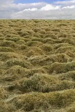 Def. "a distinct soil micromorphology, resulting from the effects of freezing and thawing processes, in which soil particles form subhorizontal layers"[3] is called a banded cryogenic fabric.