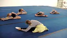 Stretching is a kind of physical fitness exercise in which a muscle (or muscle group) is stretched on purpose to its fullest length in order to help the muscle's elasticity and its tone.[1] This helps a person have better control of his or her muscles and be more flexible.