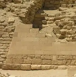 Construction Techniques : Accretion method: Courses of masonry were put down inclined towards the middle of the pyramid. The basic material consisted of limestone blocks.[2]