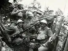 However, these figures somewhat belie the extent of the cultural changes wrought by the war. Over 5.2 million men had worn the grey-green uniform of the Italian army, half of them peasants.[6] This factor alone unified the country as never before, with men being conscripted all over the peninsula, creating the occasion for many to learn standard Italian for the first time. Young males of military age began to see themselves no longer as belonging to their separate provincial cultures, but as citizens of a victorious and now fully reunited nation. Not surprisingly in 1918 the voting age barrier was lowered to all males over 21.[7]