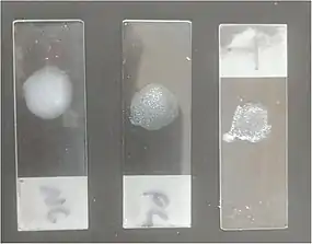 Serological tests such as indirect haemagglutination assay (IHA) have been used to detect the presence of antibodies against B. pseudomallei. However, different groups of people have widely different levels of antibodies, so interpretation of these tests depends on location. In Australia, less than 5% of people have B. pseudomallei antibodies, so the presence of even relatively low amounts of antibody is unusual and could suggest melioidosis. In Thailand, many people have antibodies against B. pseudomallei so the diagnosis of melioidosis should not be reliant entirely on the serological tests done in endemic areas.[1][2] Indirect immunofluorescent test (IFAT) uses either B. pseudomallei or B. thailandensis antigens to look for the total number of antibodies in human serum. Using IFAT is labour intensive and is not used in large scale investigations.[23] Latex agglutination uses antibodies coated on latex beads to detect B. pseudomallei antigens in solid or liquid media, although not all the assays can detect different species of Burkholderia.[24] Latex agglutination is useful in screening for suspected B. pseudomallei colonies.[1] Commercial ELISA kits for melioidosis no longer available in the market due to low sensitivity to human antibodies detection.[8]