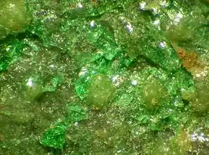 Widgiemoolthalite is a rare hydrated nickel(II) carbonate mineral with the chemical formula (Ni,Mg)5(CO3)4(OH)2·5H2O. Usually bluish-green in color, it is a brittle mineral formed during the weathering of nickel sulfide. Present on gaspéite surfaces, widgiemoolthalite has a Mohs scale hardness of 3.5 and an unknown though likely disordered crystal structure. Widgiemoolthalite was first discovered in 1992 in Widgiemooltha, Western Australia, which was its only known source as of 2016. It was named in 1993 by the three researchers who first reported its existence, Ernest H. Nickel, Bruce W. Robinson, and William G. Mumme. Full text | Download doi: 10.15347/WJS/2019.007