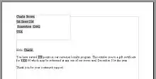 Once you have the spreadsheet saved, use it to create this mail merged letter. You will need to assign the spreadsheet columns to field names for the merge, insert an address block and put the points field into the mail merge template. If you're feeling creative you could go on to create the gift certificate with a fancy border, embedded image and word art to match.