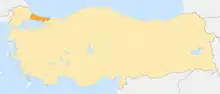 - (provinces of Turkey) Adana, Adıyaman, Afyonkarahisar, Ağrı, Aksaray, Amasya, Ankara, Antalya, Ardahan, Artvin, Aydın, Balıkesir, Bartın, Batman, Bayburt, Bilecik, Bingöl, Bitlis, Bolu, Burdur, Bursa, Çanakkale, Çankırı, Çorum, Denizli, Diyarbakır, Düzce, Edirne, Elâzığ, Erzincan, Erzurum, Eskişehir, Gaziantep, Giresun, Gümüşhane, Hakkâri, Hatay, Iğdır, Isparta, İstanbul, İzmir, Kahramanmaraş, Karabük, Karaman, Kars, Kastamonu, Kayseri, Kırıkkale, Kırklareli, Kırşehir, Kilis, Kocaeli, Konya, Kütahya, Malatya, Manisa, Mardin, Mersin, Muğla, Muş, Nevşehir, Niğde, Ordu, Osmaniye, Rize, Sakarya, Samsun, Siirt, Sinop, Sivas, Şanlıurfa, Şırnak, Tekirdağ, Tokat, Trabzon, Tunceli, Uşak, Van, Yalova, Yozgat, Zonguldak (Category: tr:Provinces of Turkey)