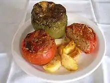 - (generally, used adjectively) dish with stuffed ingredients such as vegetables (tomatoes, peppers, etc)