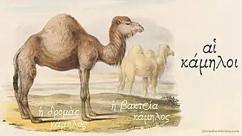 | Nominative | ὁ, ἡ κᾰ́μηλος ho, hē kámēlos |
