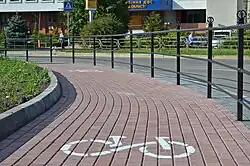 велосипе́дна дорі́жка • (velosypédna dorížka) f inan (genitive велосипе́дної дорі́жки, nominative plural велосипе́дні дорі́жки, genitive plural велосипе́дних дорі́жок)