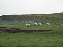 Smoke coming from Mongolian yurts